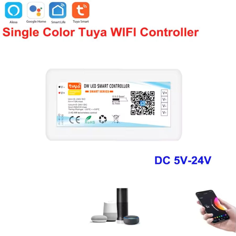 Specification: Tuya WiFi LED Strip Controller Single Color | DC5V-24V | Works with Alexa & Google Home (Dimmable)